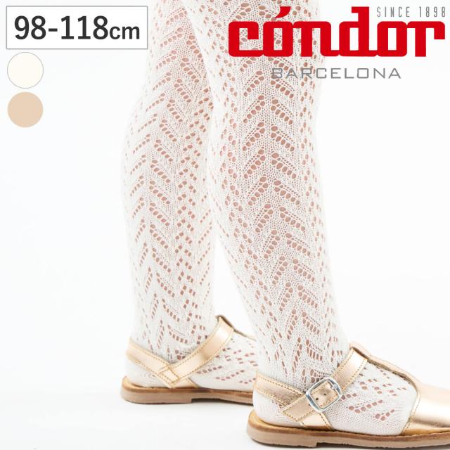 タイツ condor 子供 98〜118cm オープンワーク パールタイツ ( コンドル 子供用タイツ 発表会 レースタイツ キッズタイツ セレモニー スペイン製 上品 透かし編み 手触り 肌触り 滑らか おしゃれ )