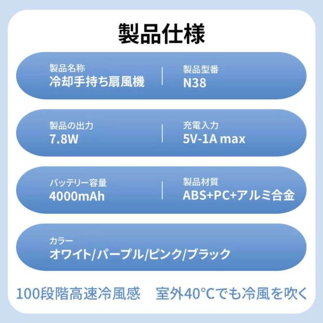 扇風機 小型 ハンディファン 冷却プレート 100段階風量 4000mAh 携帯扇風機 手持ち USB クーラー 冷感 長時間 静音 強風 夏祭り 熱中症対策 おしゃれ 可愛い