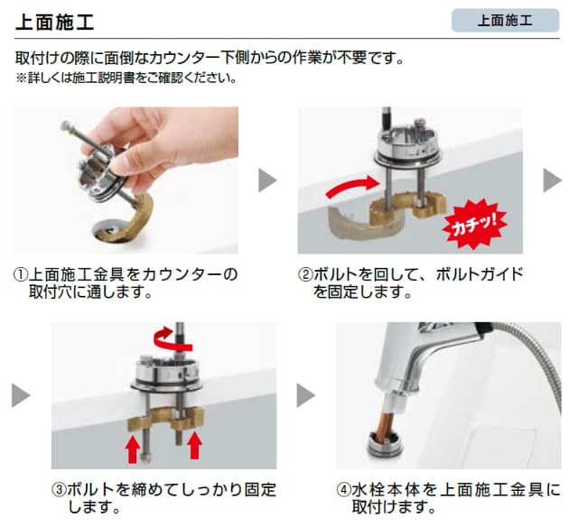 取り付けがらくな上面施工