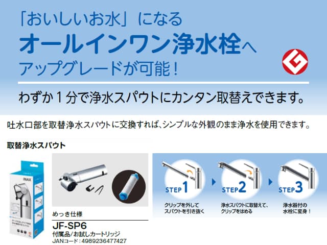 ・取替浄水スパウト(別売)でオールインワン浄水栓へアップグレード可能!