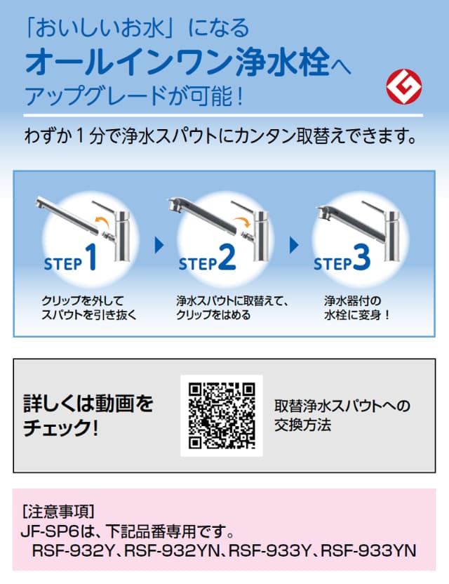 オールインワン浄水栓へアップグレードできる取替浄水スパウト