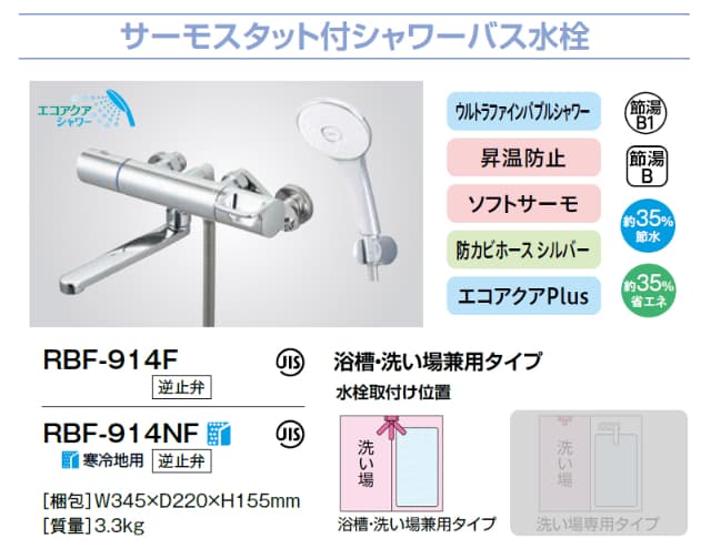 LIXIL サーモスタット付シャワーバス水栓 RBF-914F/914NF リクシル INAX イナックス エコアクアシャワー 節水 省エネ ウルトラファインバブル 防カビホース 一般地用 寒冷地用 浴室水栓金具 蛇口