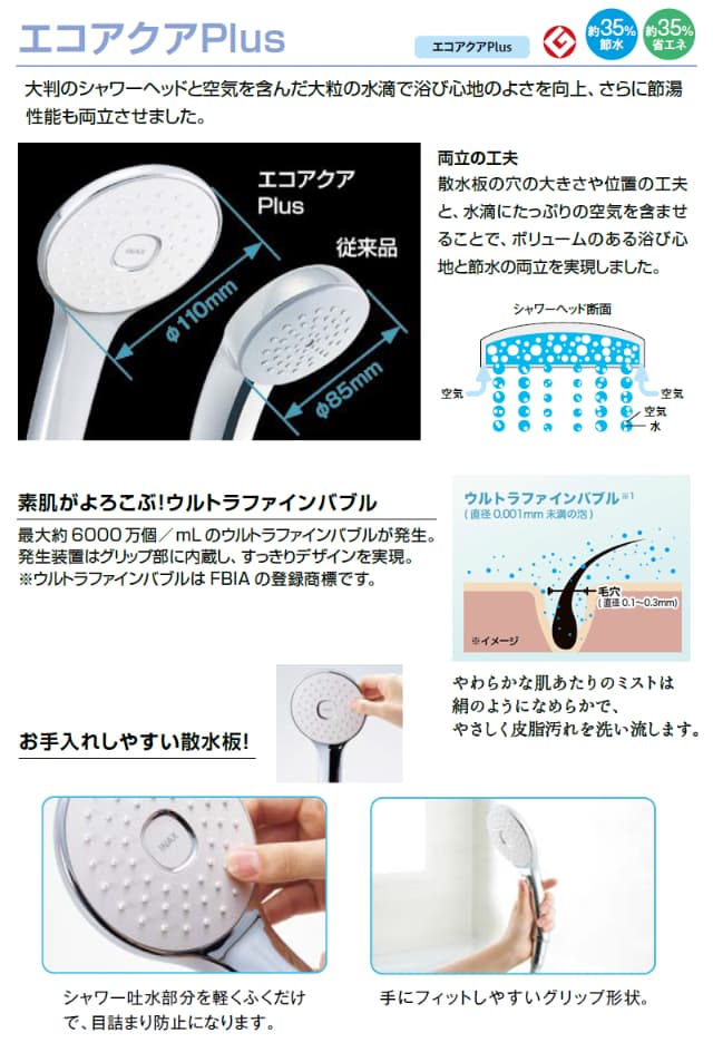 - 浴び心地のよさと節水を両立した「エコアクアPlus」