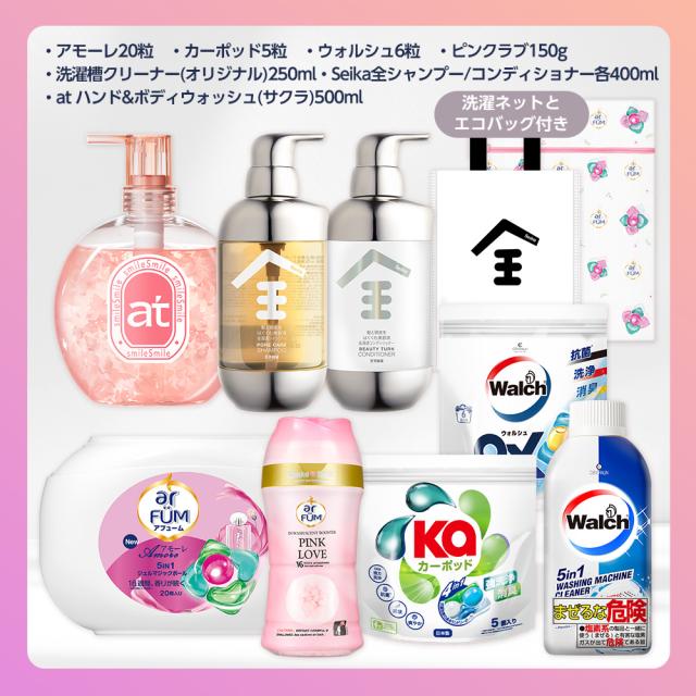 【日用品全部入り】 アフューム 日用品 大容量 セット 洗濯洗剤 アモーレ本体20粒 セイカゼン シャンコン atボディウォッシュ 香りビーズ 洗濯槽クリーナー まとめ買い お得 詰め合わせ ランドリー ヘアケア ボディケア 洗濯ネット エコバッグ付き