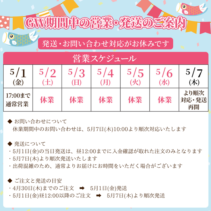土日祝日は休業日です。翌営業日以降のご対応となります。