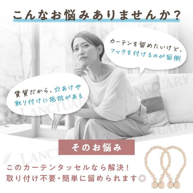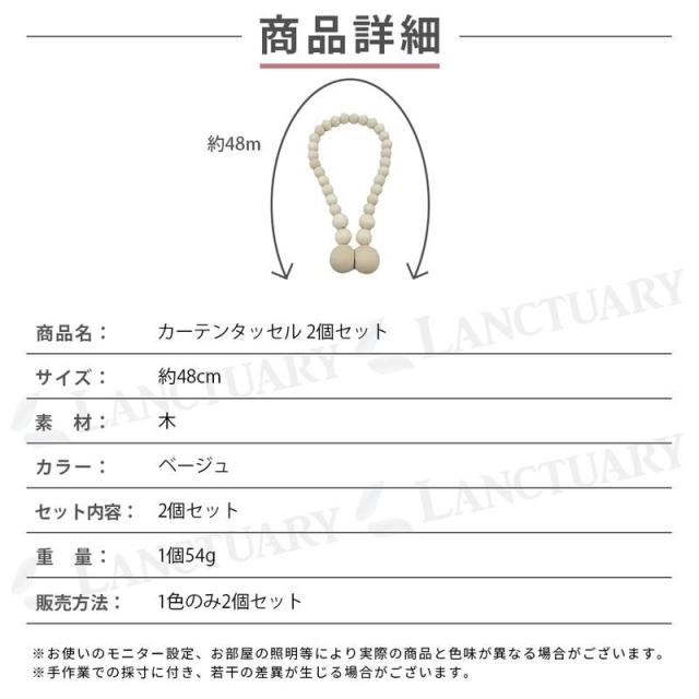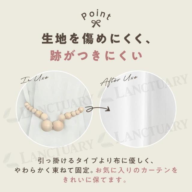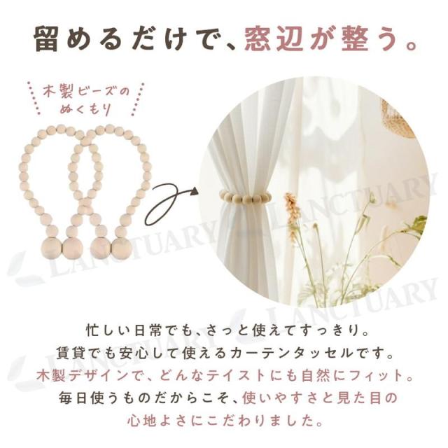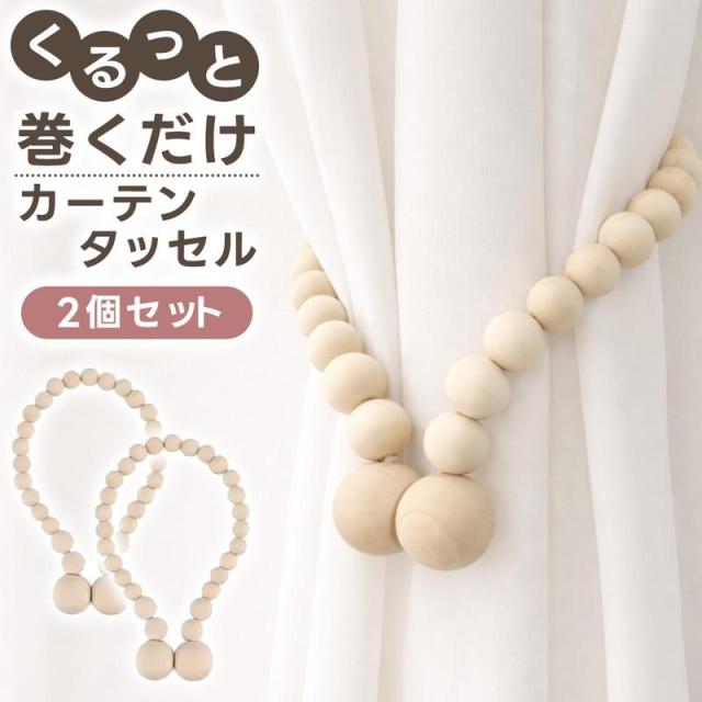 お部屋の印象をやさしく整える、ウッドビーズ仕様のカーテンホルダー(2個セット)。