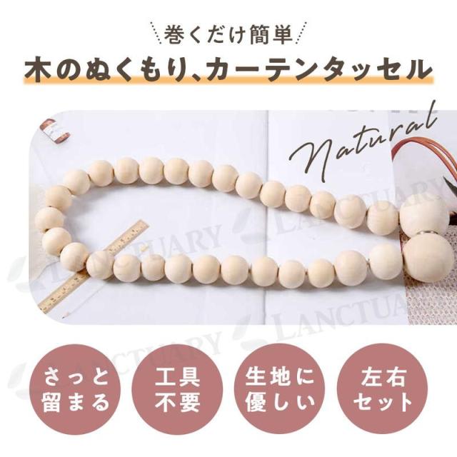 【爆買】カーテンホルダー カーテン留め ウッドビーズ ナチュラル 木製 インテリア 雑貨 北欧 ロープタイプ 巻き付け おしゃれ シンプル ベージュ カーテンアクセサリー
