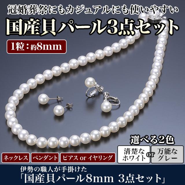 快適生活 伊勢の職人が手掛けた「国産貝パール8mm 3点セット」