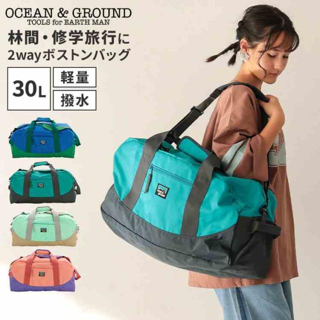ボストンバッグ オーシャンアンドグラウンド Ocean&Ground キッズ 子供 女の子 男の子 小学生 中学生 30L 2way 大容量 軽量 撥水 旅行バッグ ショルダーバッグ 肩掛け 斜めがけ おしゃれ かわいい 小学校 高学年 中学校 林間学校 修学旅行 2泊3日ブルー ミント ピンク