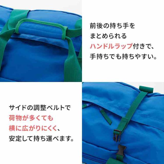 手持ちしやすいハンドルラップや、荷物を入れた際の横への広がりを防ぐ調整ベルトなど、使いやすさにもこだわりました。