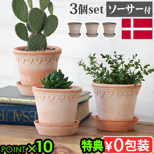 【特典付】 植木鉢 テラコッタ プランター おしゃれ 丸型 陶器 鉢 受け皿付き バーグスポッター コペンハーゲン ソーサー付き 3パック BERGS POTTER COPENHAGEN 素焼き 陶器鉢 デンマーク イタリア製 かわいい 鉢植え 花 ガーデニング P10倍 送料無料