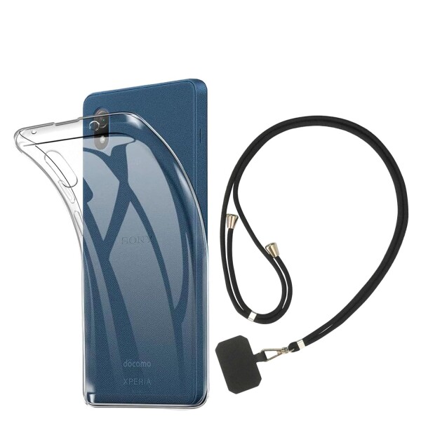 cxybgfv Xperia Ace III SO-53C SOG08 用のケースクリア 透明 TPU カバー シリコンケース 全透明、耐衝撃、汚れ防止、 耐水+スマホストラップ スマホストラップ ショルダー 携帯ストラップ ナイロ