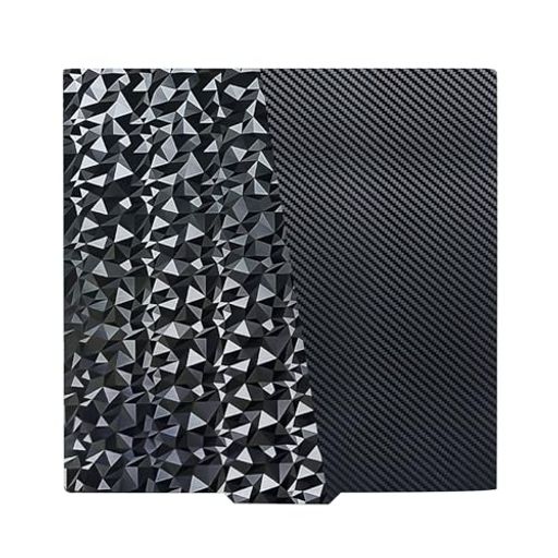 【両面PEO+PETビルドプレート】ブラックダイヤモンドPEO+カーボンファイバーPETの特殊表面加工により、反り防止と高い接着力を実現します。プリントモデルには独特の美しいテクスチャが転写されます