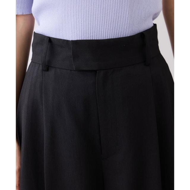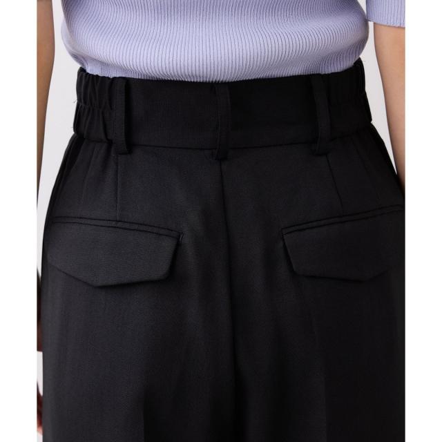 前はタック仕様。3タックでゆとりはありますが、上部分を中縫いしているのでスッキリとしたシルエットが叶います。ベルト後ろはサイドにゴムを入れた仕様にしてます。着用時楽で着心地も良いです。