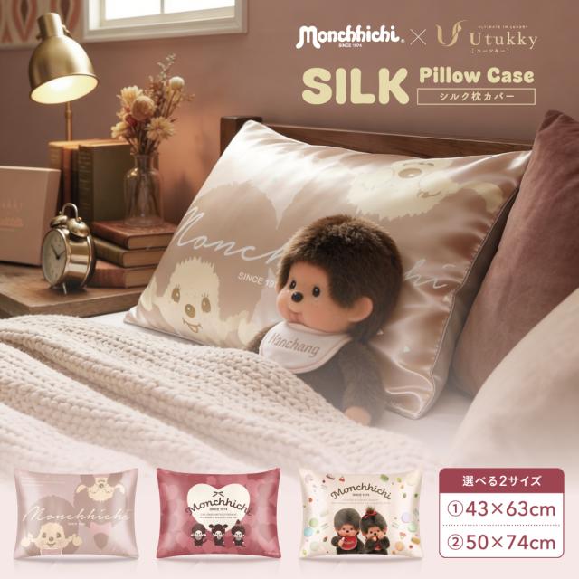 「モンチッチ コラボ」シルク 枕カバー モンチッチ 枕カバー43x63cm 50*74cm 片面100%シルク 封筒式まくらカバー 光沢感 洗える 可愛い 子供 四季適応 可愛い 枕カバー 1枚入り シルク ピーロケース