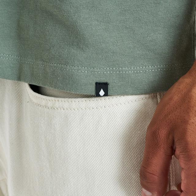 フロント左胸にはブランドを象徴するストーンロゴをシンプルに配置。