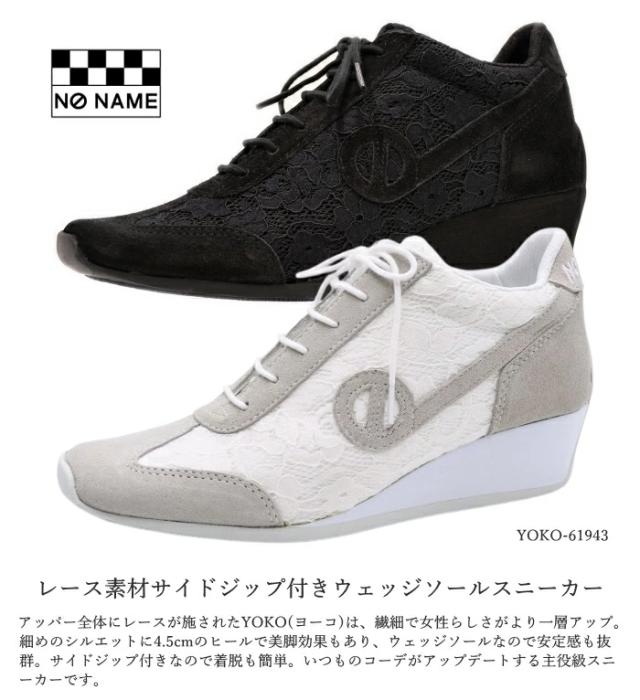 NO NAME ノーネーム ヒールスニーカー YOKO-61943 ヨーコ ブラック ホワイト 軽量 スニーカー ウェッジソール