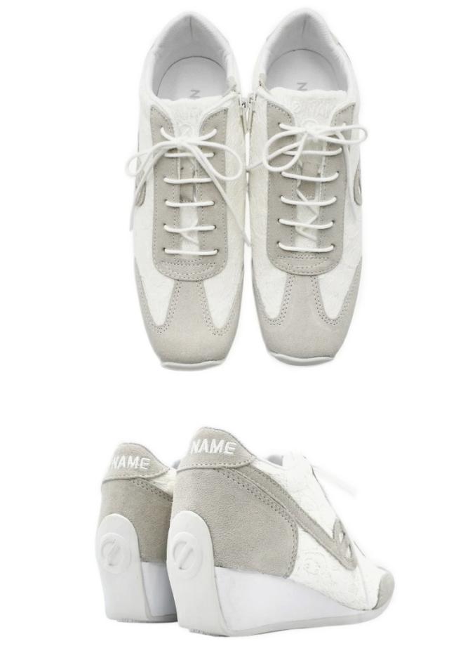 アッパー全体にレースが施されたYOKO(ヨーコ)は、繊細で女性らしさがより一層アップ。 細めのシルエットに4.5cmのヒールで美脚効果もあり、ウェッジソールなので安定感も抜 群。サイドジップ付きなので着脱も簡単。いつものコーデがアップデートする主役級スニ ーカーです。