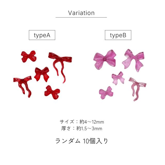 ネイルパーツ クリアカラーリボンMIXパーツ 全2種 [10個入り]