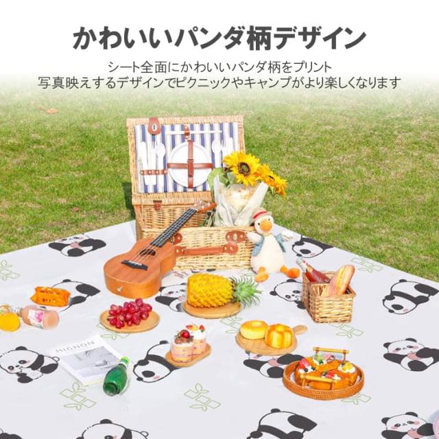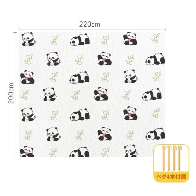 使い捨てレジャーシート 200cm×220cm 大判サイズ プラスチックペグ4本付き ピクニックマット パンダ柄 防水 お花見 YCD2022