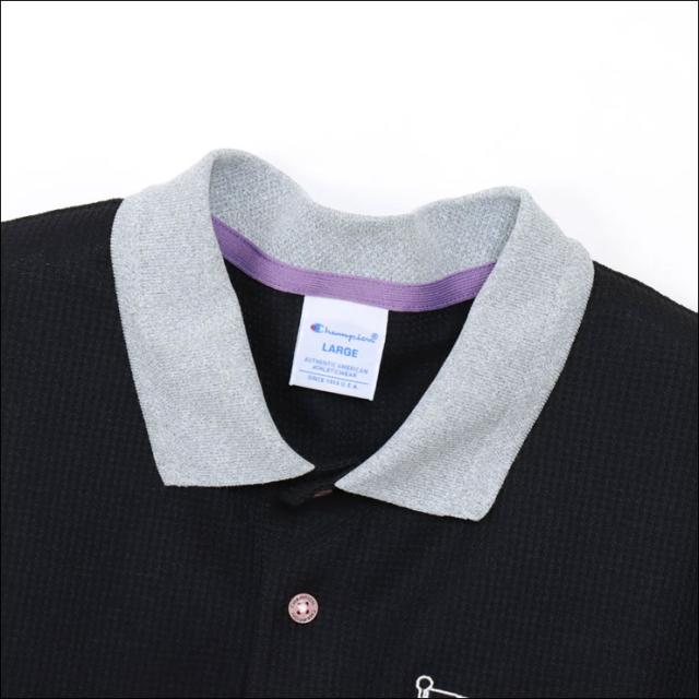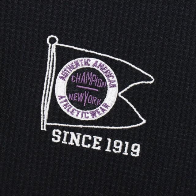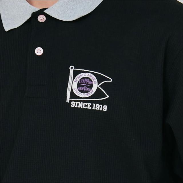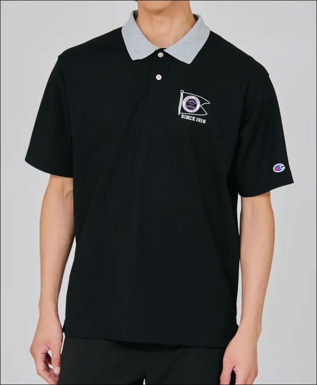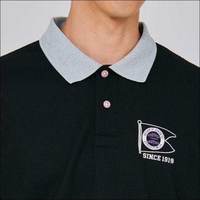 環境に配慮されたリサイクルポリエステル100%で、ソフトな肌触りのワッフル素材を使用したポロシャツです。涼しげな見ためとしわになりにくい特長に加え、優れた通気性、速乾性、遮熱効果、UVカット機能など、暑い時期にうれしい機能も充実。ボディカラーと異なる色を使ったヘリンボーン柄の襟の裏側は通気性をさらに高めるメッシュ構造で、暑い中でも快適にプレーできます。身幅、肩幅にゆとりを持たせたリラックスフィット。左胸には「CHAMPION(チャンピオン)」、「NEW YORK(ニューヨーク)」、「AUTHENTIC AMERICAN ATHLETICWEAR(オーセンティック アメリカン アスレチックウェア)」、「SINCE 1919(シンス 1919)」とフラッグを組み合わせたグラフィックを刺繍しています。