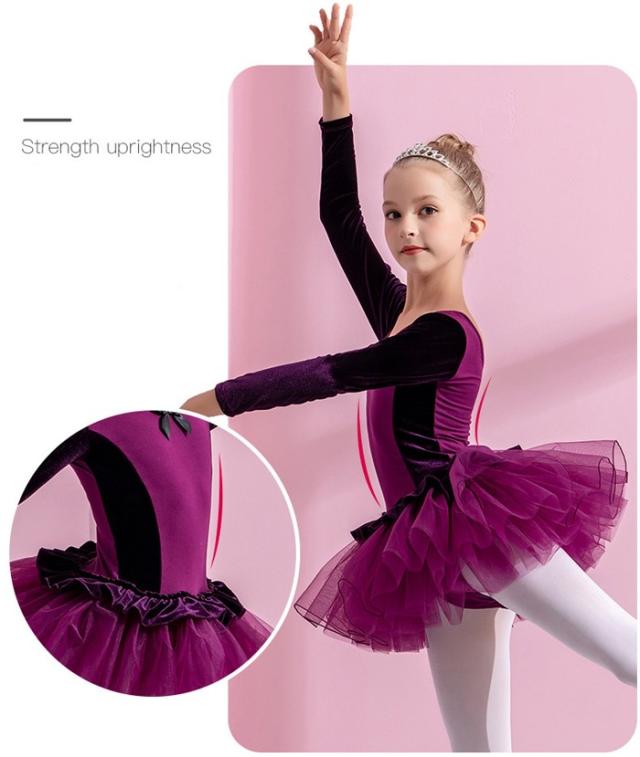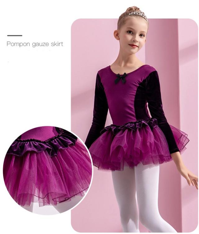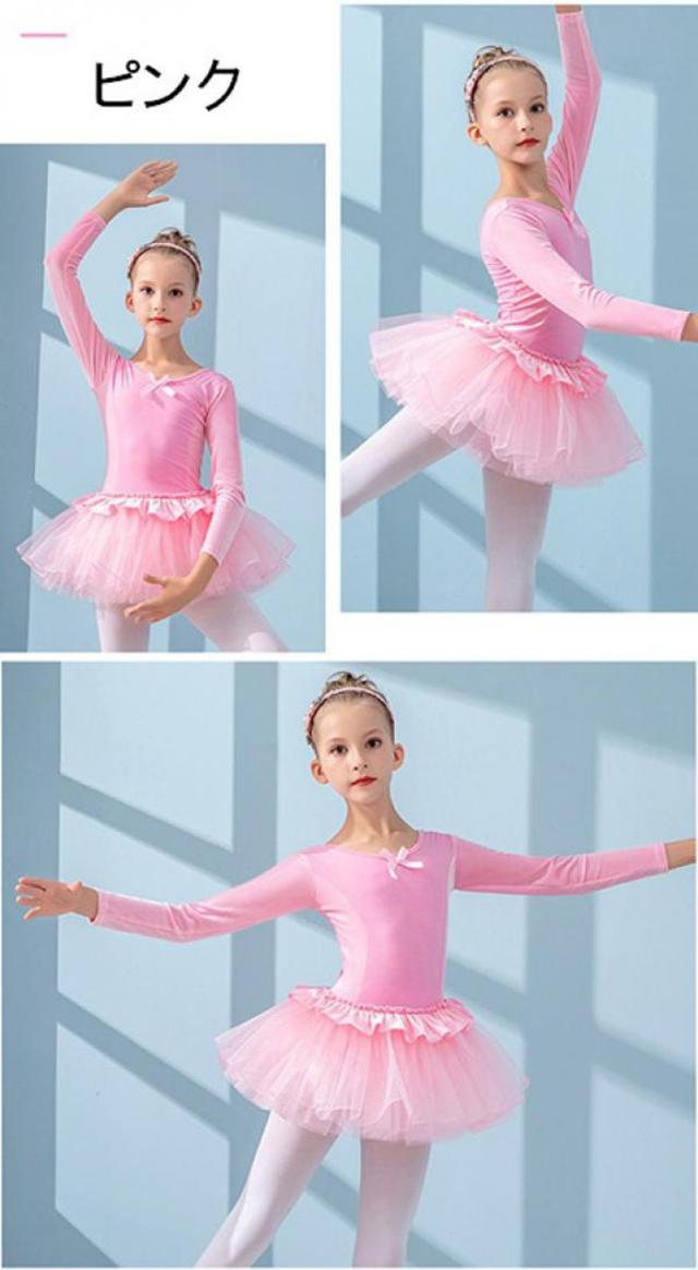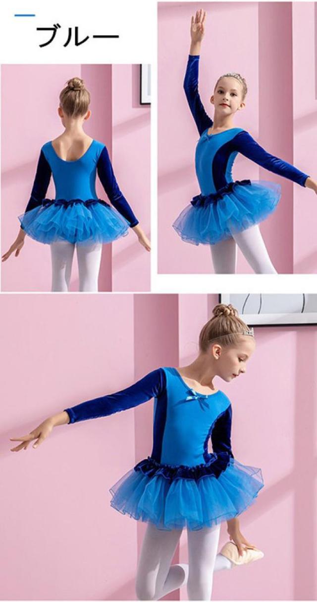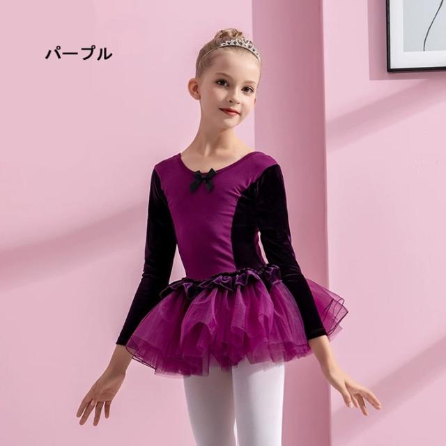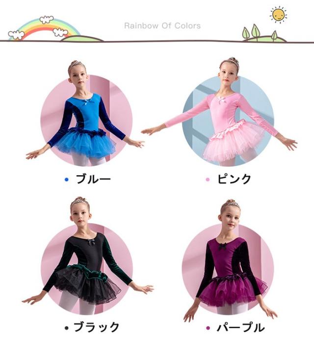 バレエレオタード 子供 ワンピース 長袖 スカート付き チュチュ バレエ レオタード キッズ ジュニア用 バレエ用品 レッスン こども 発表会 レッスン着 新体操 バレエ衣装 練習用 ブルー ピンク ブラック パープル 110 120 130 140 150 160 n8009zbzbx7