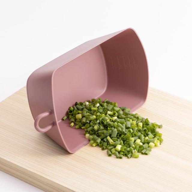 切った食材をサッとすくえるチリトリ形状のざるバット