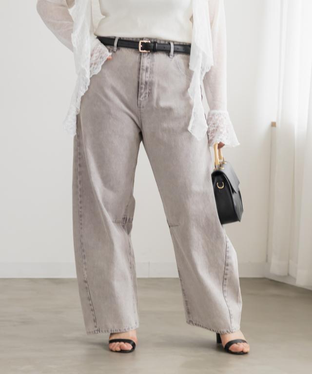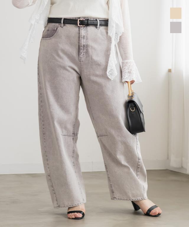 大きいサイズ/レディース/3L/4L/カラーデニムバレルレッグパンツ