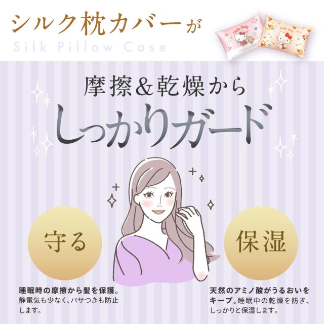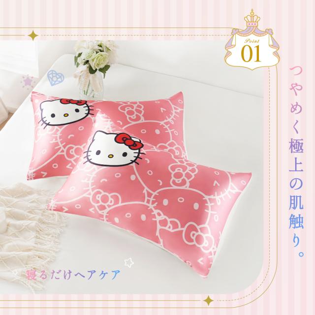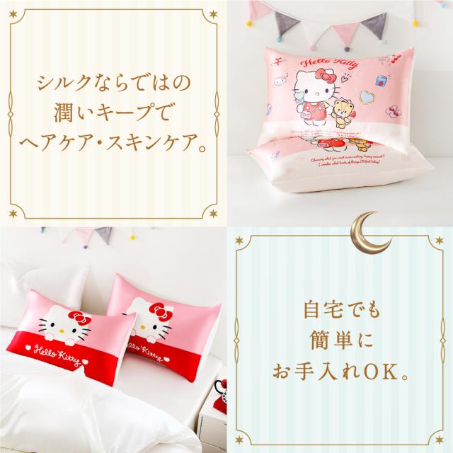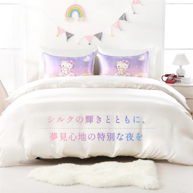 Utukky シルク枕カバー サンリオ キャラクターズ ハローキティ 枕カバー 43×63cm 片面 100%シルク ピーロケース 封筒式 まくらカバー 合わせ式 高級感 洗える 四季適応 可愛い 子供 サンリオキャラクターズ 枕カバー 1枚入り