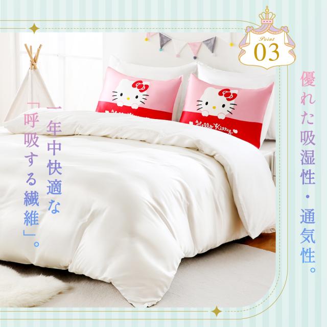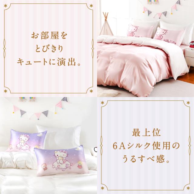 大人気キャラクター「ハローキティ」。 その愛らしいビジュアルが寝室にやさしい彩りを添え、プレゼントとしても喜ばれる華やかさを備えています。