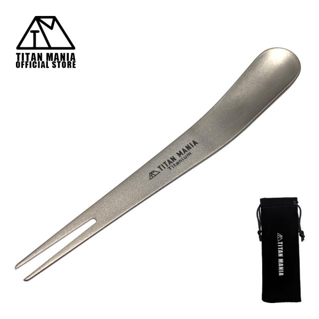 TITAN MANIA チタンマニア フォーク スプーン チタン製 ミニ 2in1 カトラリー キャンプ 軽量 小さい 錆びない フルーツフォーク アイスクリームスプーン 登山 ソロキャンプ アウトドア用品 キャンプ用品 収納袋付き