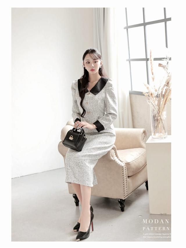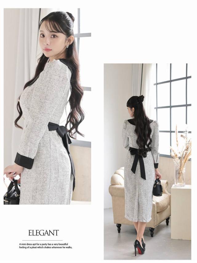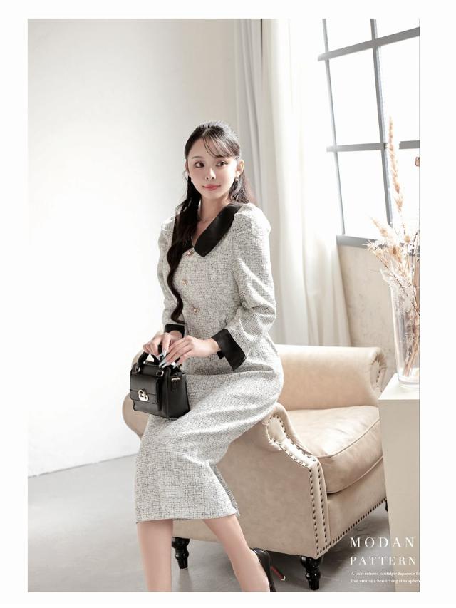 キャバワンピース DaysPiece 韓国ワンピース 韓国style 大人ツイード ミックスツイード 襟付き キャバ ワンピー