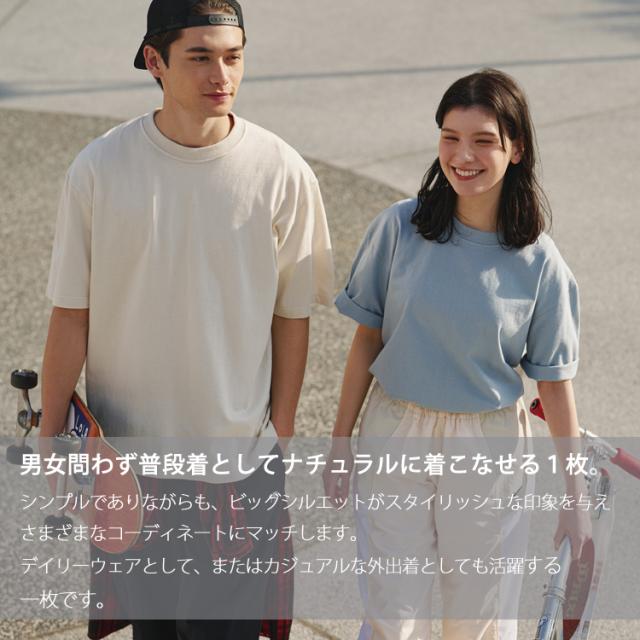 人気の00148-HVTと同様のスーバーヘビー生地を使用した、襟のダブルステッチが存在感を高めるビッグシルエットTシャツ
