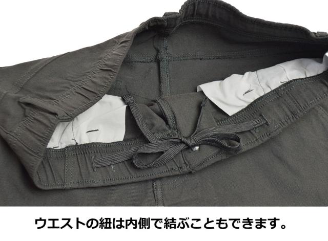 ■ウエストはゴム仕様で楽ちん!ずり落ち防止の紐付き。紐は2WAYスタイル:ラフに外側で結んでもOK、スッキリ内側で結ぶ事も可能。