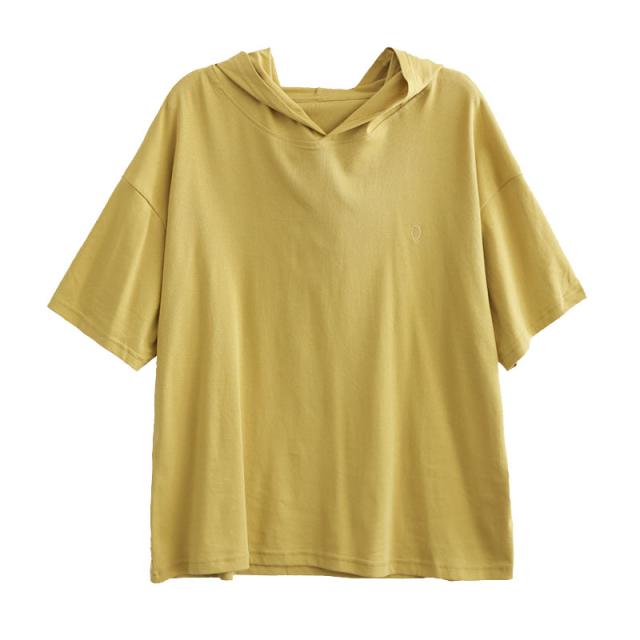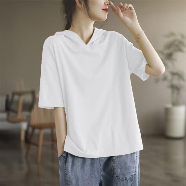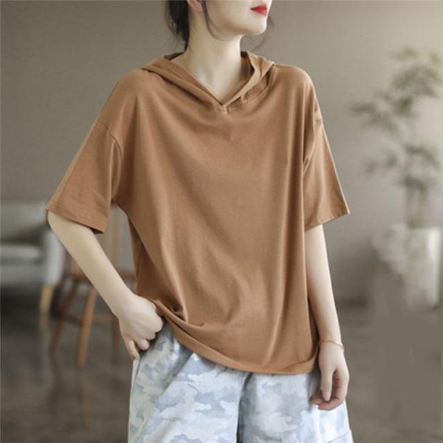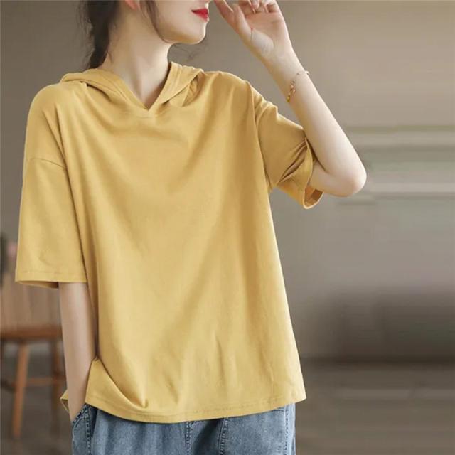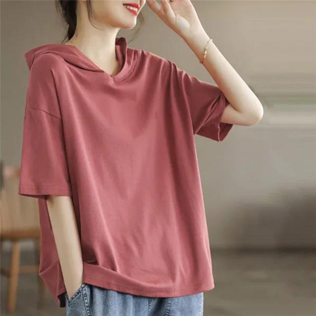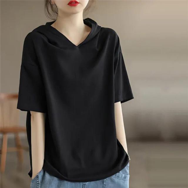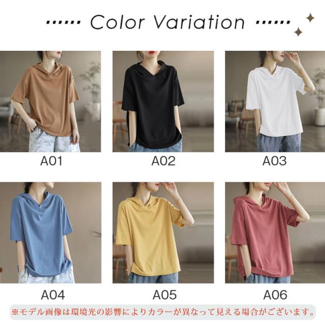 半袖パーカー レディース パーカー 五分袖 フード付き ゆったり 薄手 Tシャツ カジュアル カットソー トップス プルオーバー