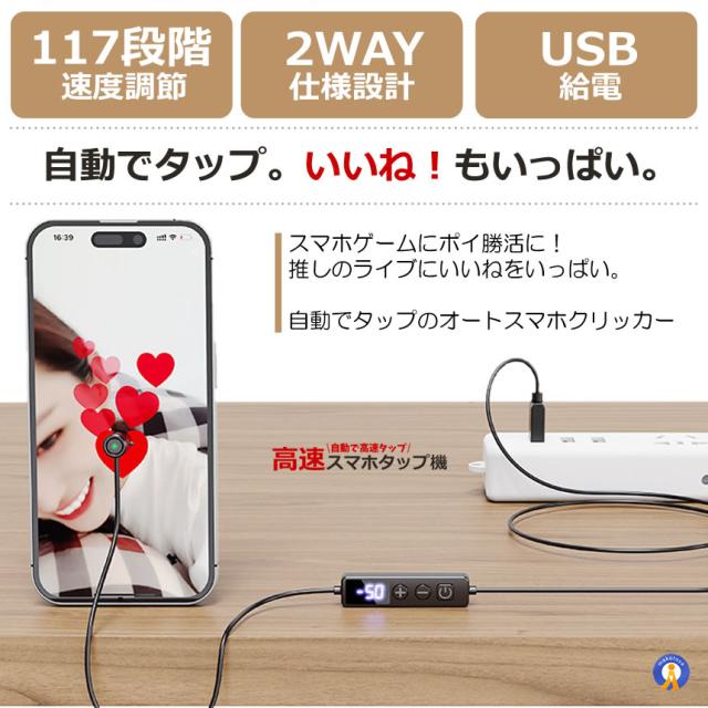 5個セット 自動でタップ スマホ オート タップ 117段階 速度 調節 高速 クリッカー TikTok インスタ いいね ランキング USBTAB