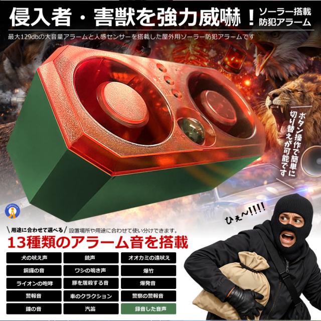 5個セット ハイパワー 防犯アラーム 13種 人感センサー 129db 大音量 ソーラー 録音機能 リモコン付 防水 N911T