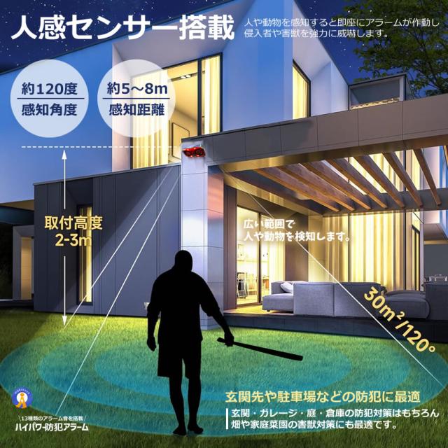 ●侵入者・害獣を強力威嚇!ソーラー防犯アラーム