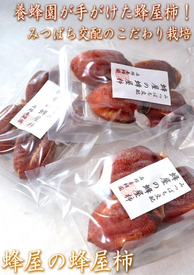 | 特徴 | こだわりの栽培と製法で抜群の味「蜂屋の蜂谷柿」!養蜂園が蜜蜂交配で育てた柿を用いて、素材そのままの味を生かす製法で干し柿にしました!濃厚な甘さと抜群の味をぜひお召し上がりください! |