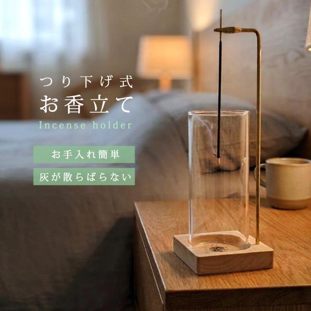 つり下げ式 お香立て|灰が散らばらない ガラスカップ付き インセンスホルダー