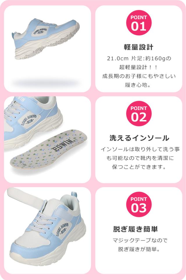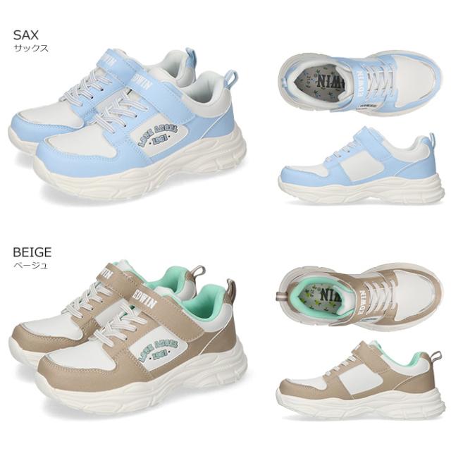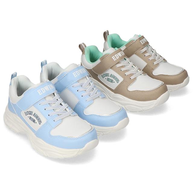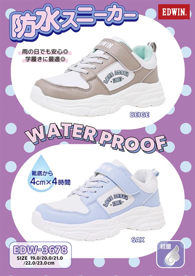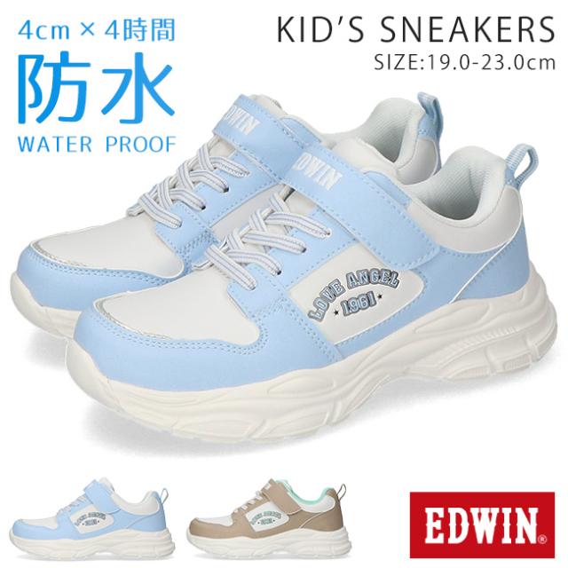 エドウィン スニーカー キッズ 防水 歩きやすい 履きやすい ローカット 疲れない 軽量 軽い ベルクロ マジックテープ EDW-3678 おしゃれ かわいい ジュニア ガールズ 女の子 小学生 通学 子供靴 運動靴 雨 シューズ 靴