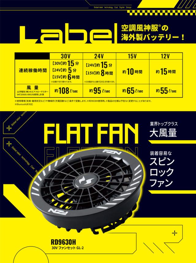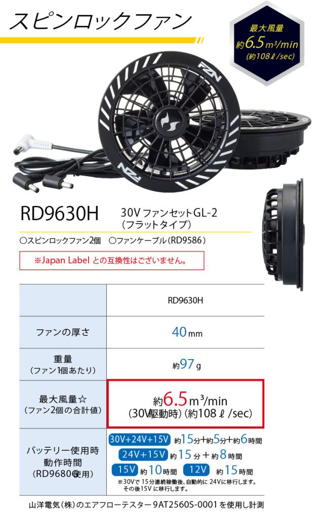 空調風神服スピンロックファンセット RD9630Hは大風量の最大風量108L/秒!