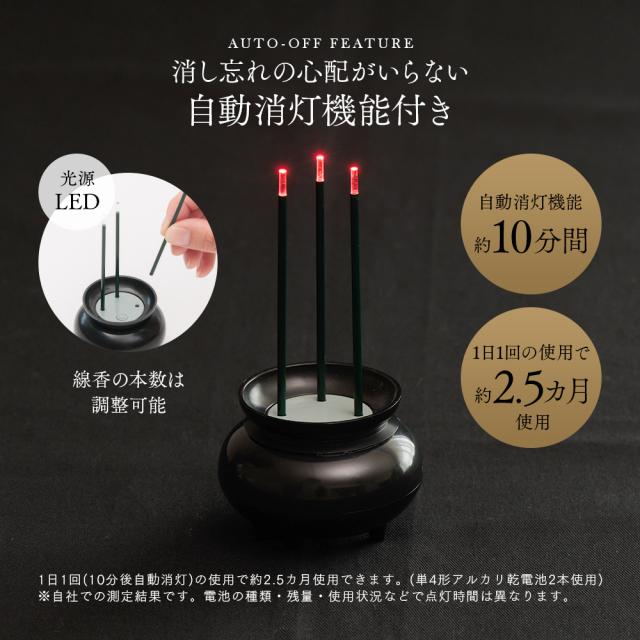 火を使わないLED線香 自動消灯タイプです。