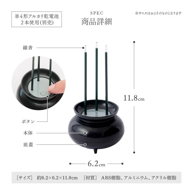LED光源の火を使わない線香だから、