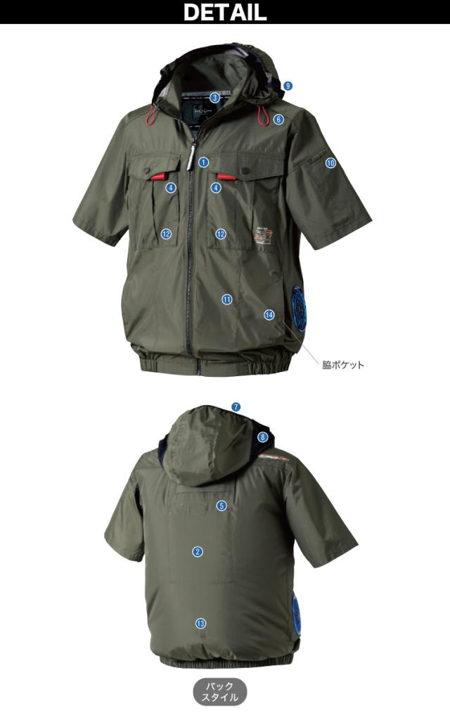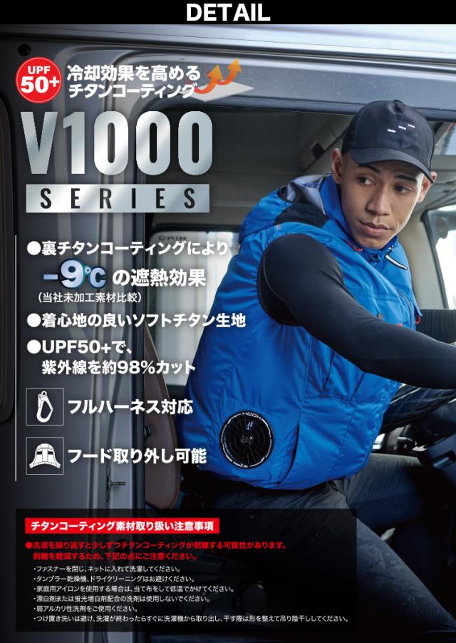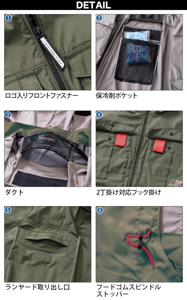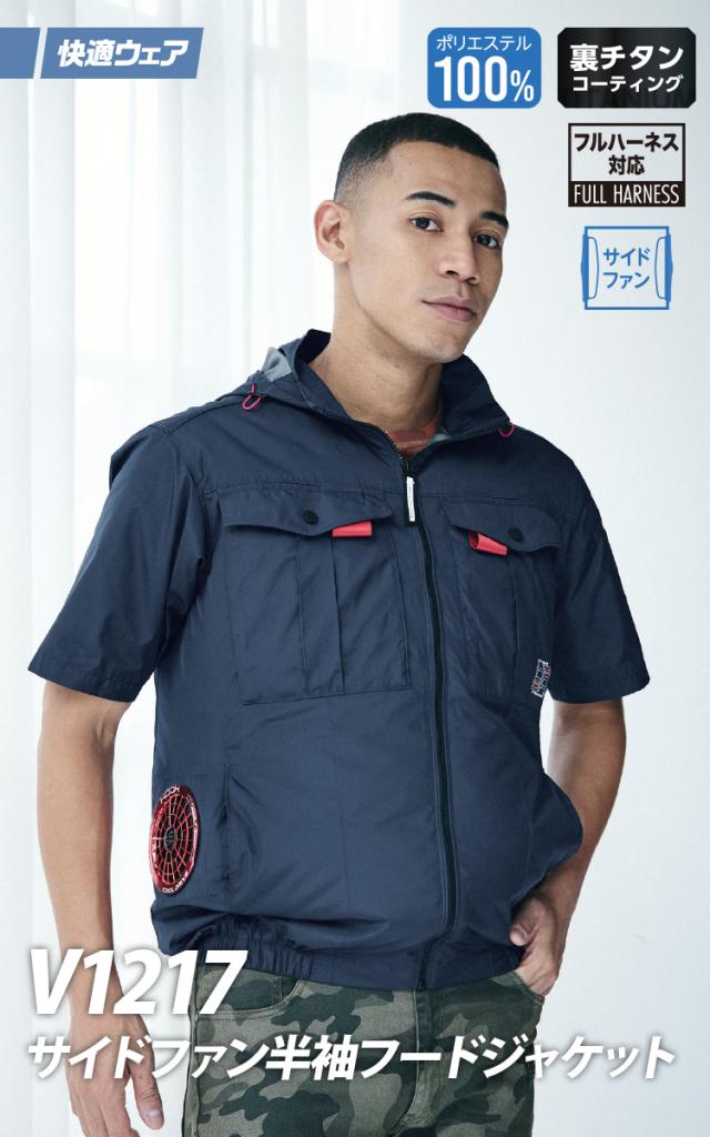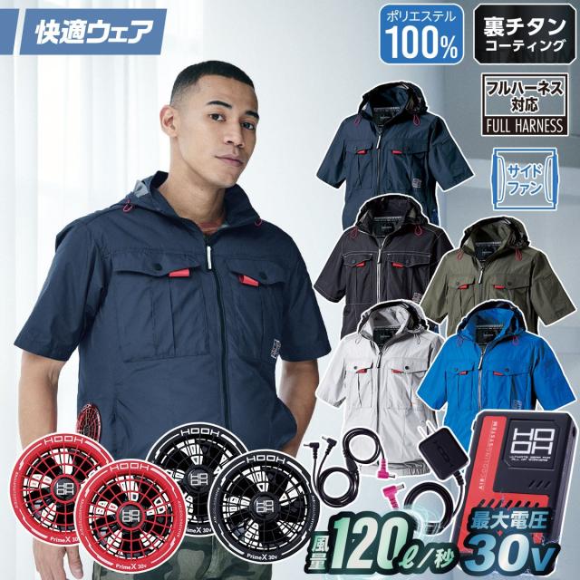 村上被服 HOOH V1217/V3001/V3002 サイドファン半袖フードジャケット 2026年新型 30Vファンバッテリーセット 春夏 撥水加工 電動ファン用ウェア 作業服 裏チタンコーティング UPF50 紫外線カット 空調作業服 フルハーネス対応