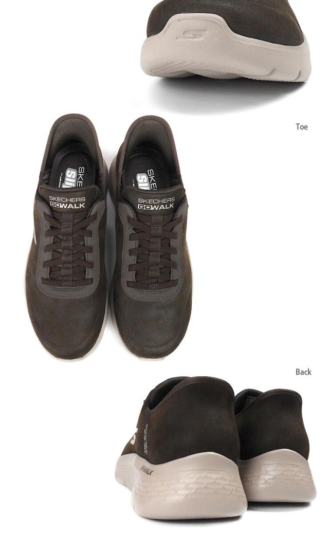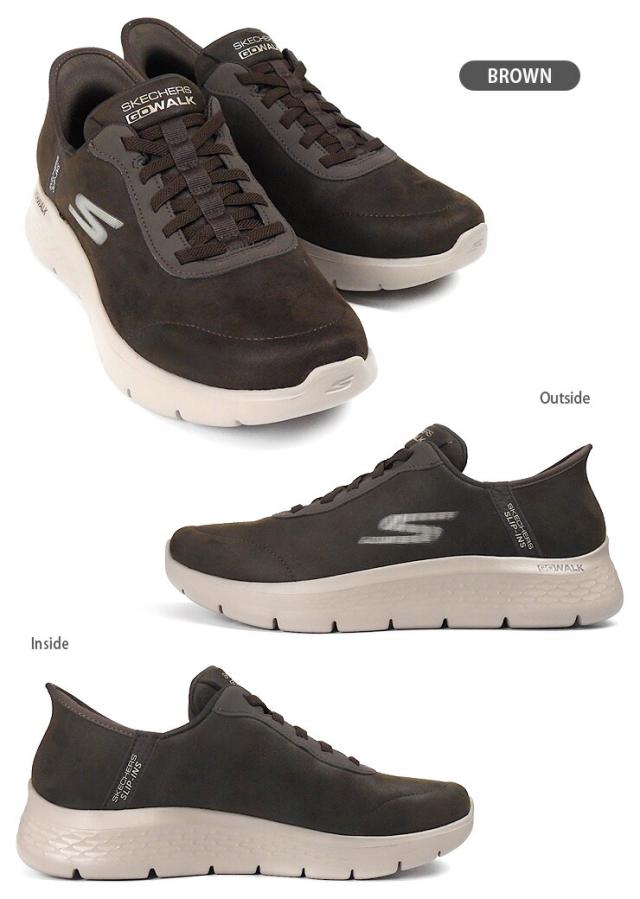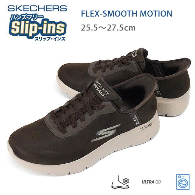 スケッチャーズ スリップインズ ゴーウォーク フレックス スムース モーション スニーカー メンズ 25.5 26 26.5 27 27.5 ブラウン SKECHERS GO WALK FLEX-SMOOTH MOTION Hands Free Slip-ins ハンズフリー 216326/BRN フェイクレザー 無地 茶【箱アウトレット】sh2505
