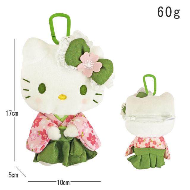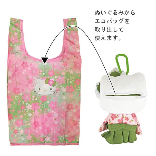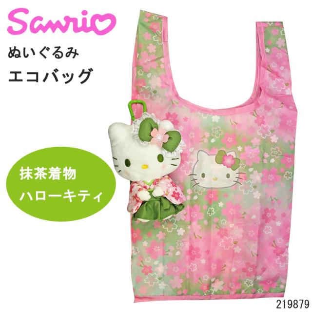 ハローキティ エコバッグ ぬいぐるみ付 抹茶着物 カラビナ付 買い物 キーホルダー バッグチャーム ショッピングバッグ ナカジマコーポレーション 219879