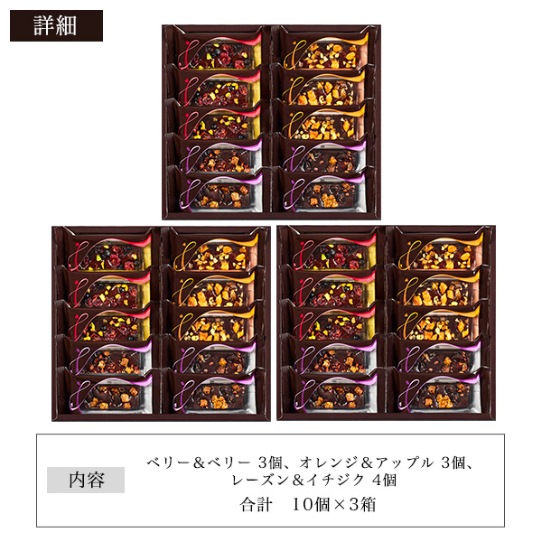 【内容量】ベリー&ベリー3個、オレンジ&アップル3個、レーズン&イチジク4個