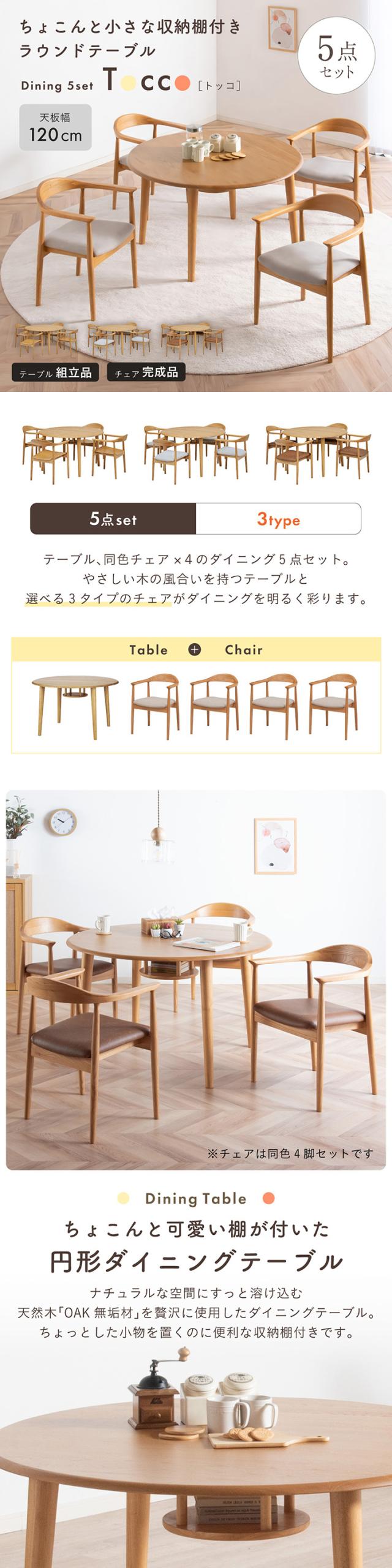 【5点セット】ダイニングテーブルセット 丸 4人掛け 120cm 北欧 ダイニングテーブル 丸テーブル ダイニングチェア 4脚セット Tocco(トッコ) 3タイプ対応 ダイニング チェア 椅子 北欧 食卓 テーブル