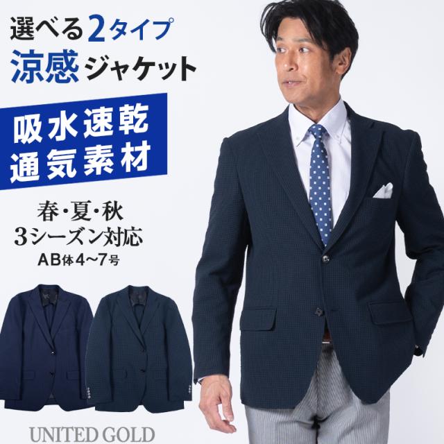 ジャケット メンズ 春夏秋 涼感 吸水速乾 通気性 シアサッカー ドットエア 軽量 ストレッチ 2タイプ ビジネス ビジカジ AB体 紳士 男性用 ネイビー 濃紺 jk319 送料無料 ※お使いのパソコンモニタやスマートフォンの機種、ブラウザによって実際の商品の色とは異なって見える場合がございます。ご了承ください。UNITED GOLD ユナイテッドゴールド UNITEDGOLD